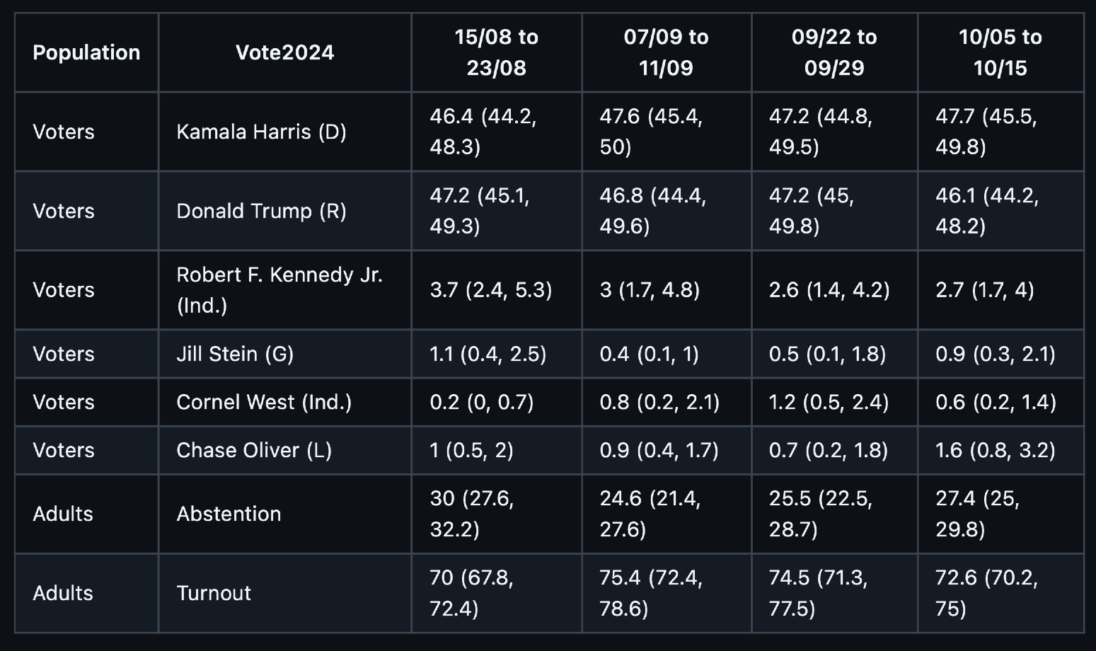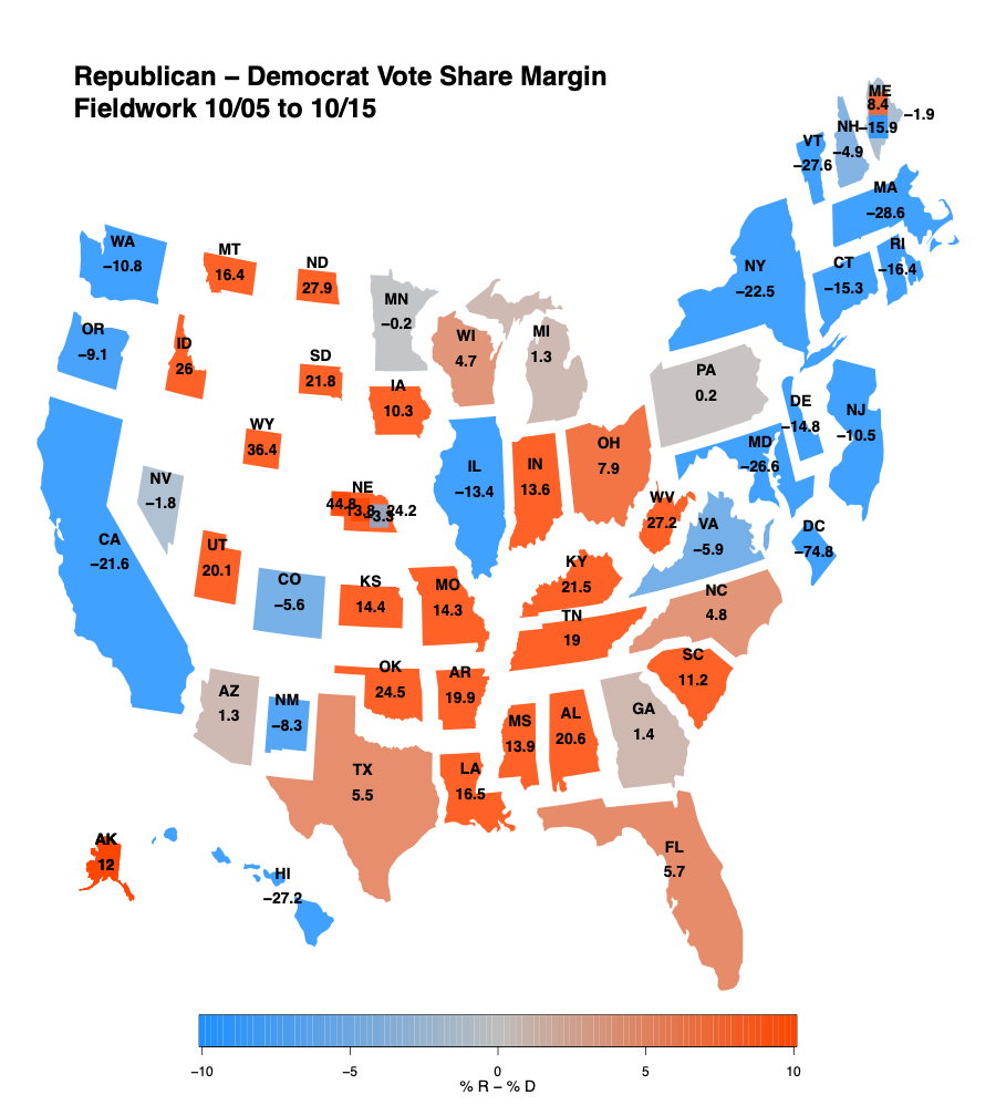 PoSSUM USA 2024 Presidential Campaign Vote Share Predictions (October, 05-15 2024)